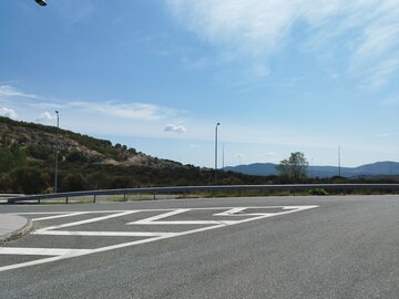 След обяда следва прав участък през малка долина, планините стоят от двете страни, в началото и в края ѝ се издигат много високи комини. Отново тунели, част от тях с ремонт и осезаемо изкачване. Влизам в Янина и спирам на Shell, 95 няма, служителят се извинява и казва да дойда сутринта. Продължавам.