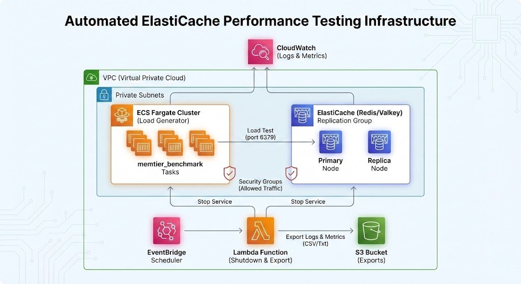 I built this repeatable ElastiCache benchmarking platform to close that gap with receipts: timestamped telemetry and exportable artifacts that stand up in a design review. This lab isn't just about Redis (or Valkey) as software, it's about the architectural decisions that land in production: which engine, which instance class, and which topology delivers the best outcome for the budget.