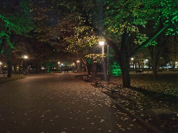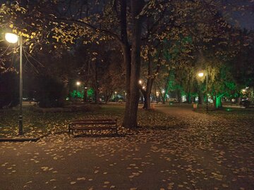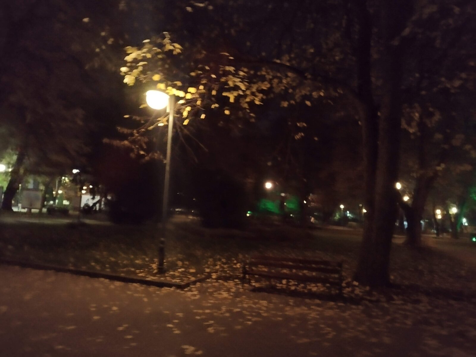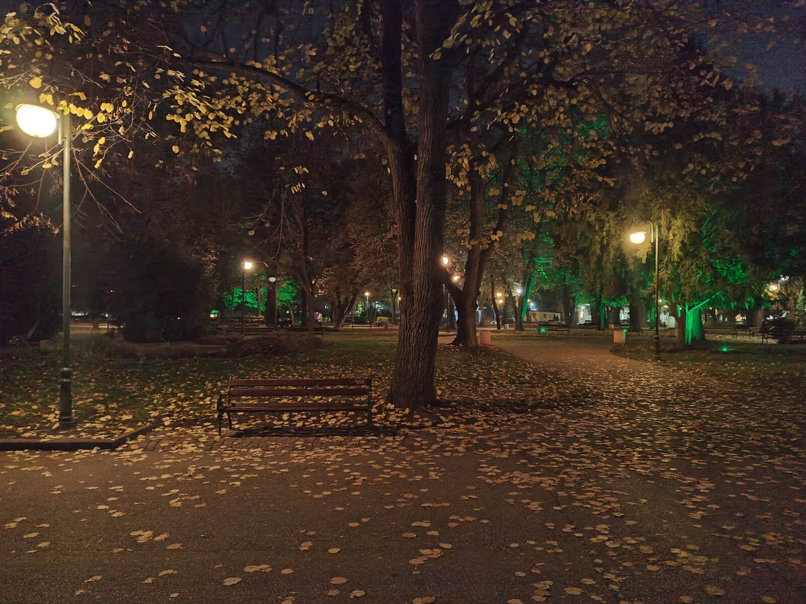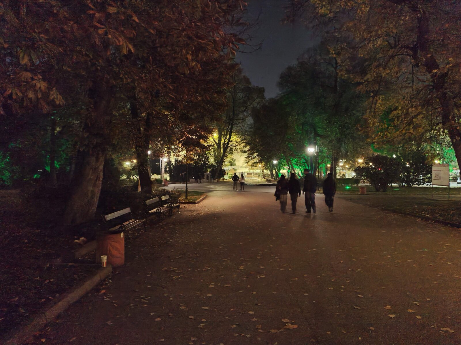Снаружи Пловдив дышит поздней осенью. Воздух уже достаточно прохладный, чтобы сделать шаг медленнее и глубже вдохнуть. Фонари в парке подсвечивают деревья снизу, зелёные пятна в кроне соседствуют с чёрными провалами. Листья лежат плотным ковром, шуршат под кроссовками. В темноте редкие фигуры: кто-то выгуливает собаку, кто-то спешит домой, кто-то, как и я, просто идёт медленно, без видимой причины.