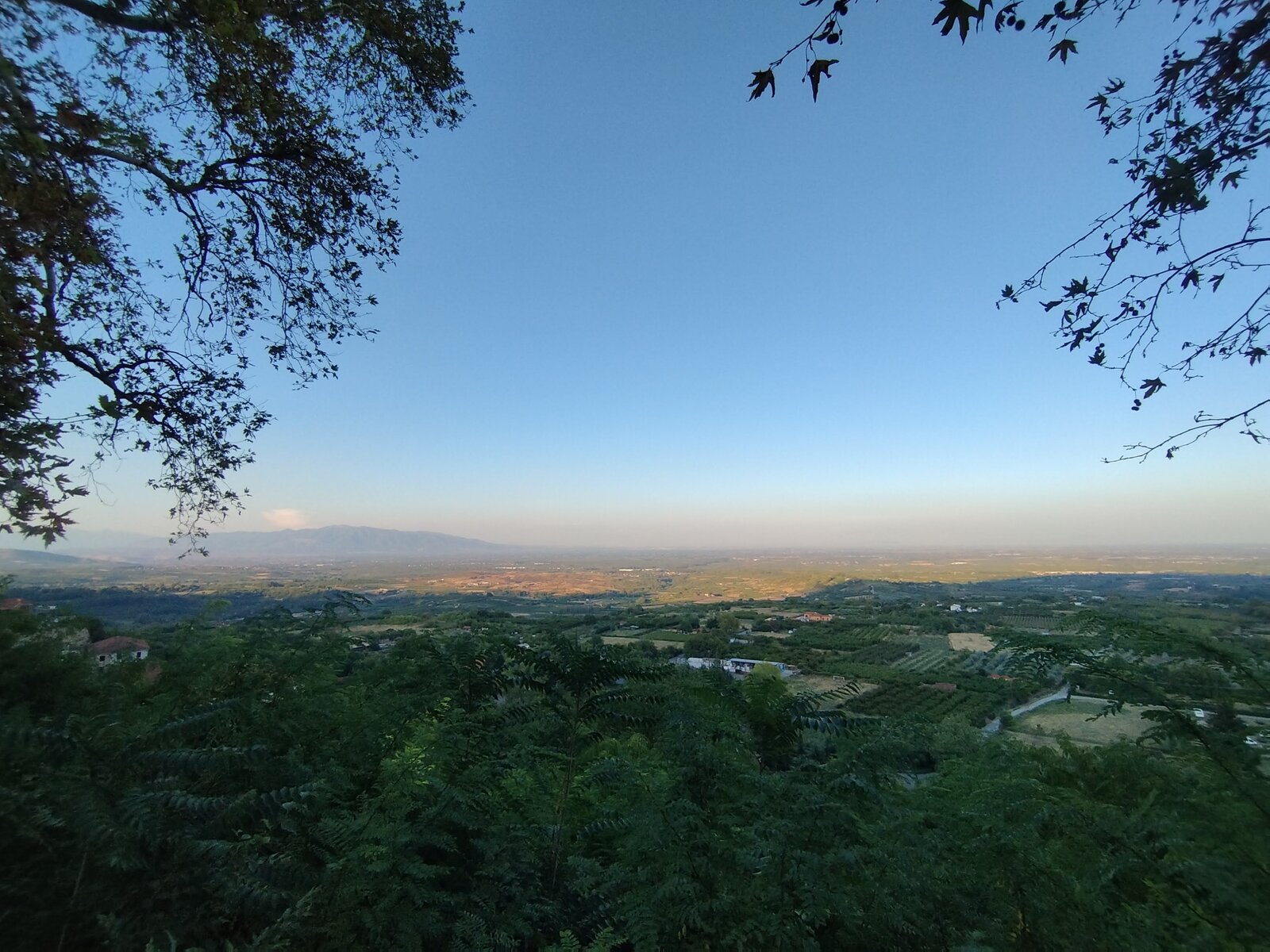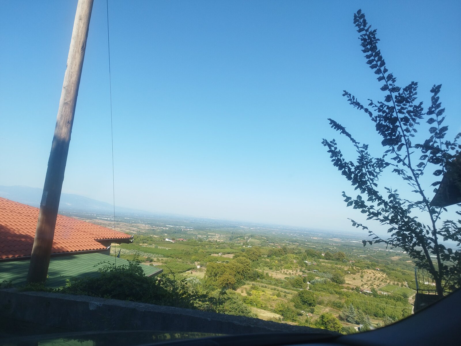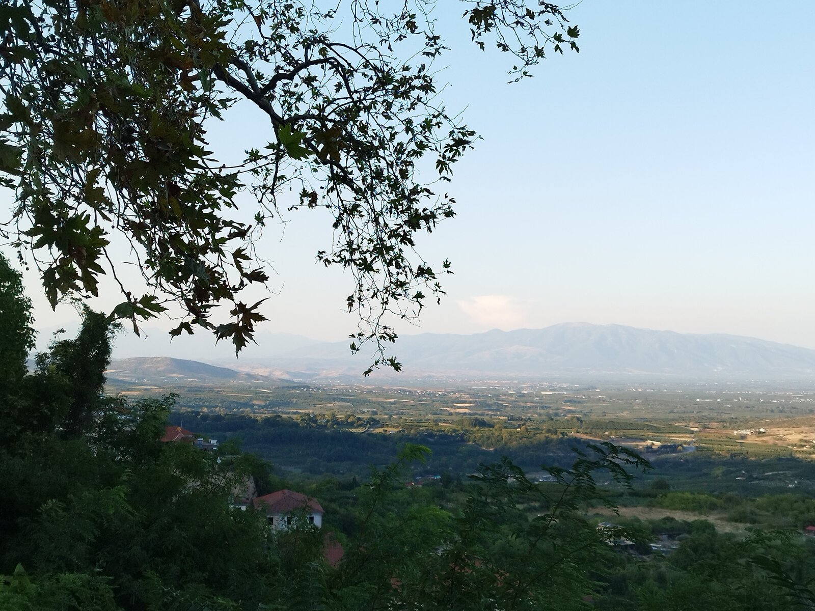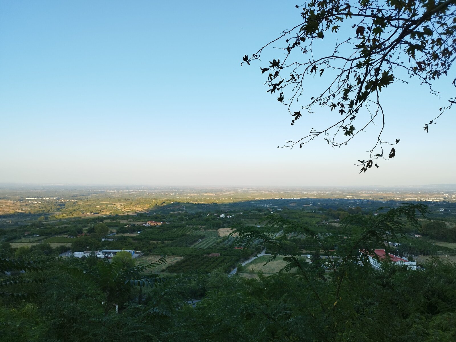 Waze ме водеше отгоре, портата на Esperides Spa Hotel е долу. Обиколих по стръмното и влязох. Стаята е голяма и комфортна. Пред хотела - равнина, лозя, ниски къщи...