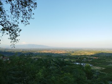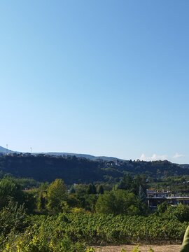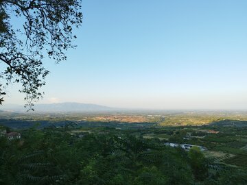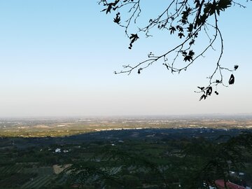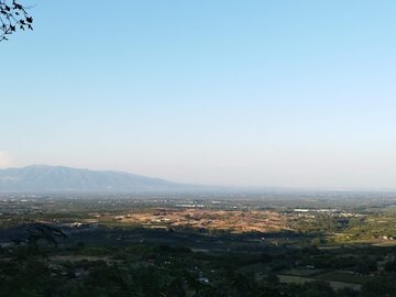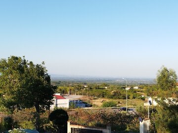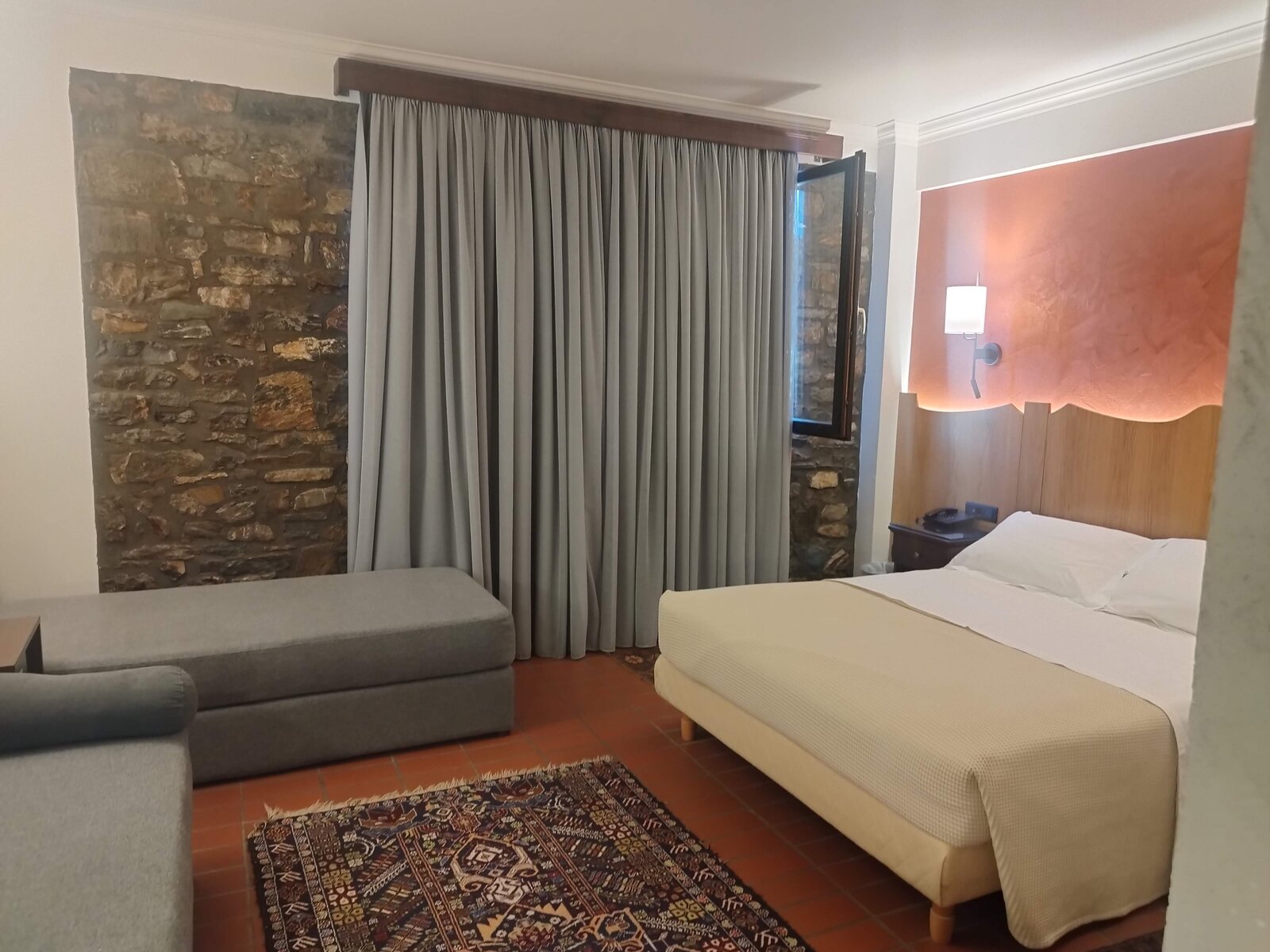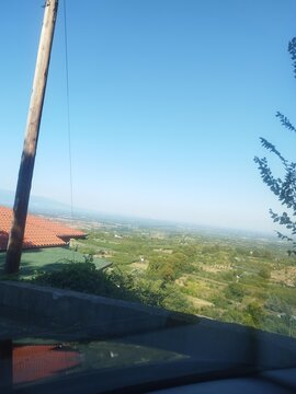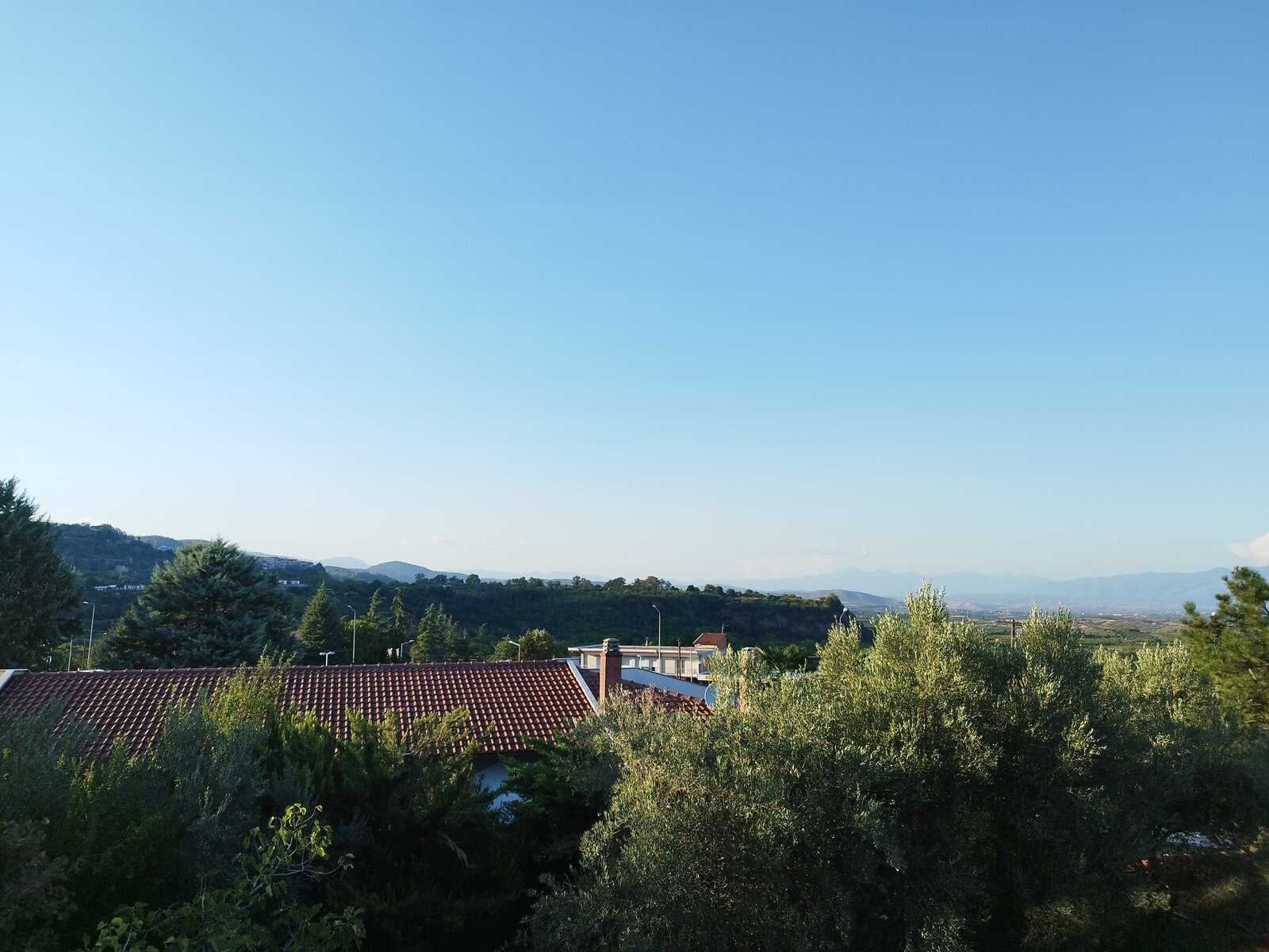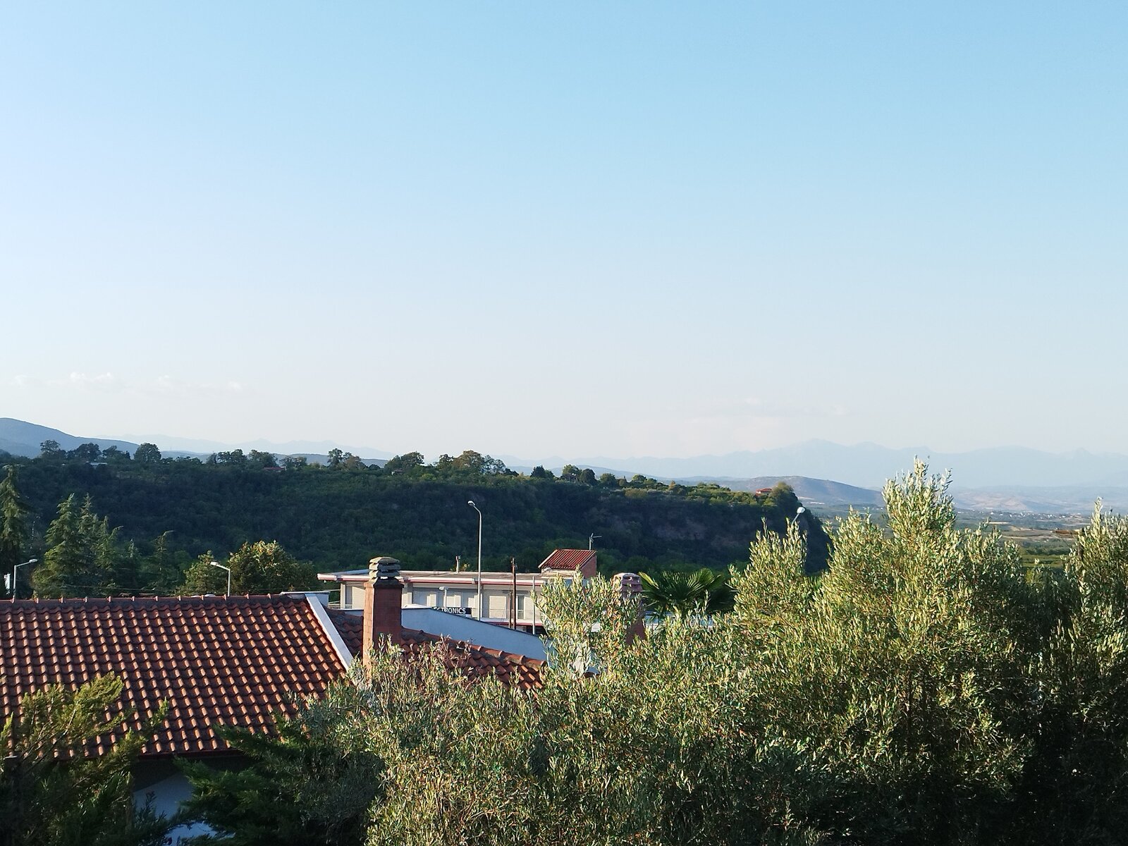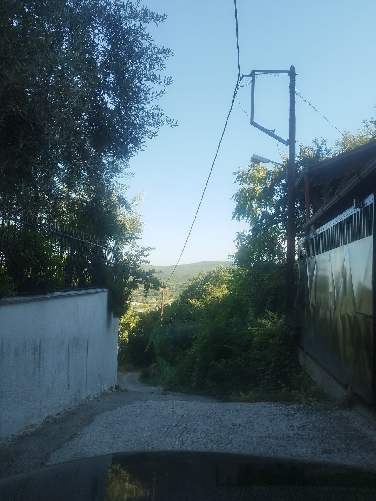 Waze ме водеше отгоре, портата на Esperides Spa Hotel е долу. Обиколих по стръмното и влязох. Стаята е голяма и комфортна. Пред хотела - равнина, лозя, ниски къщи...