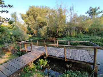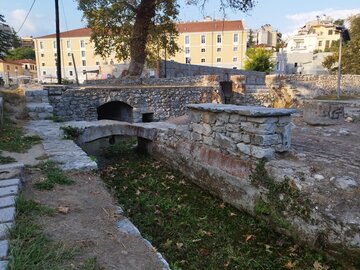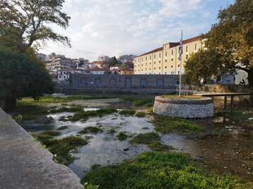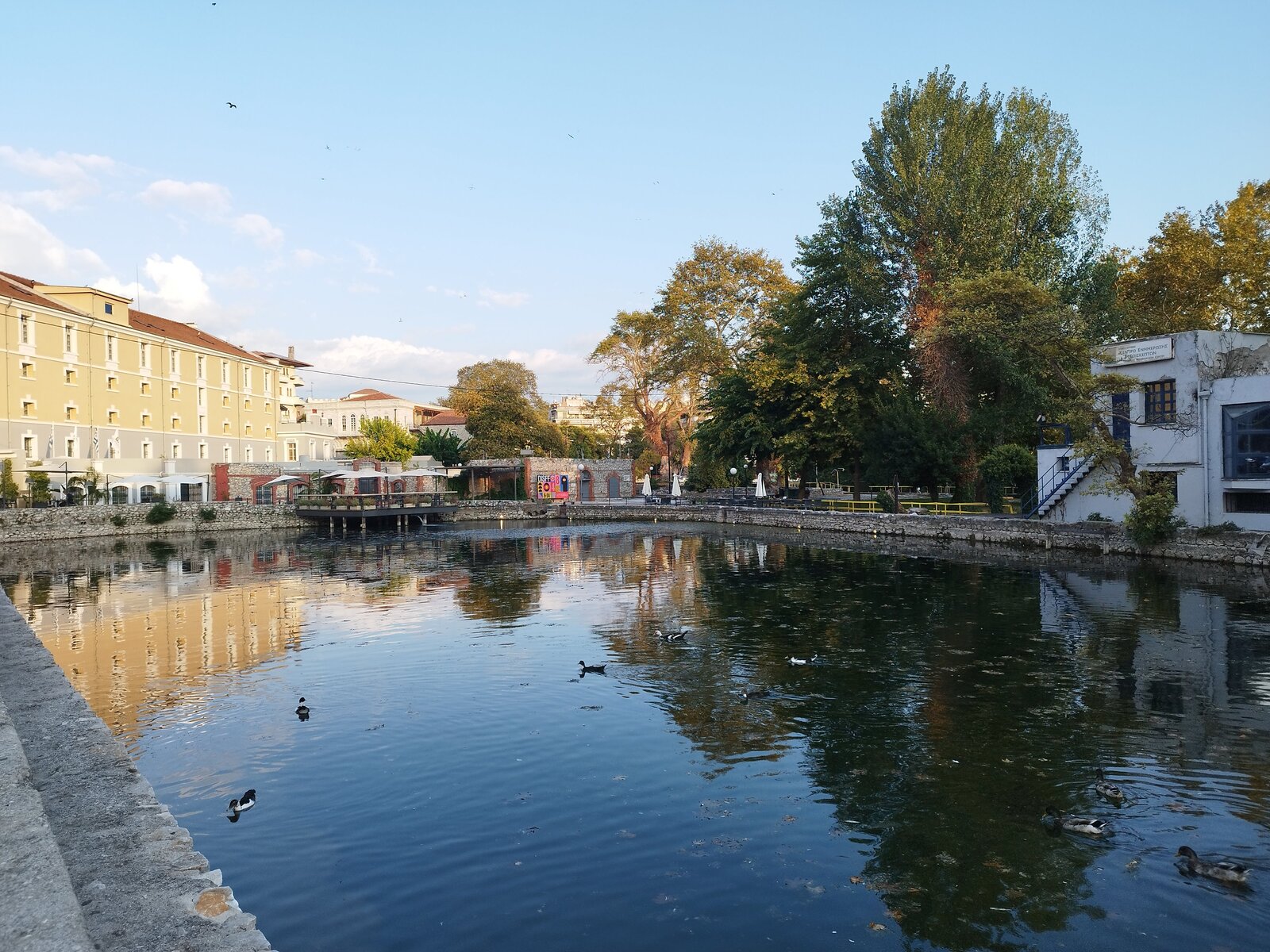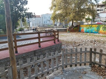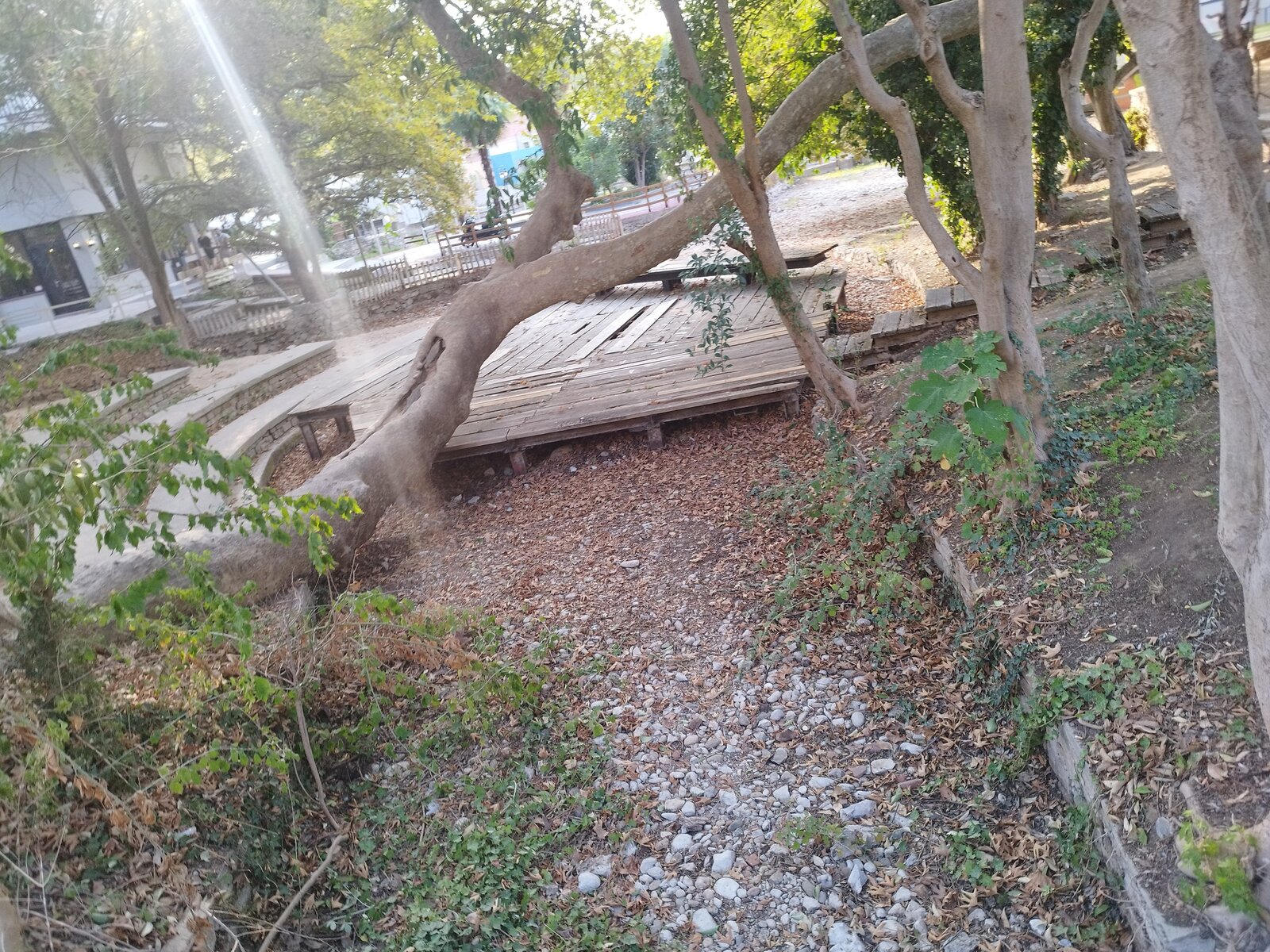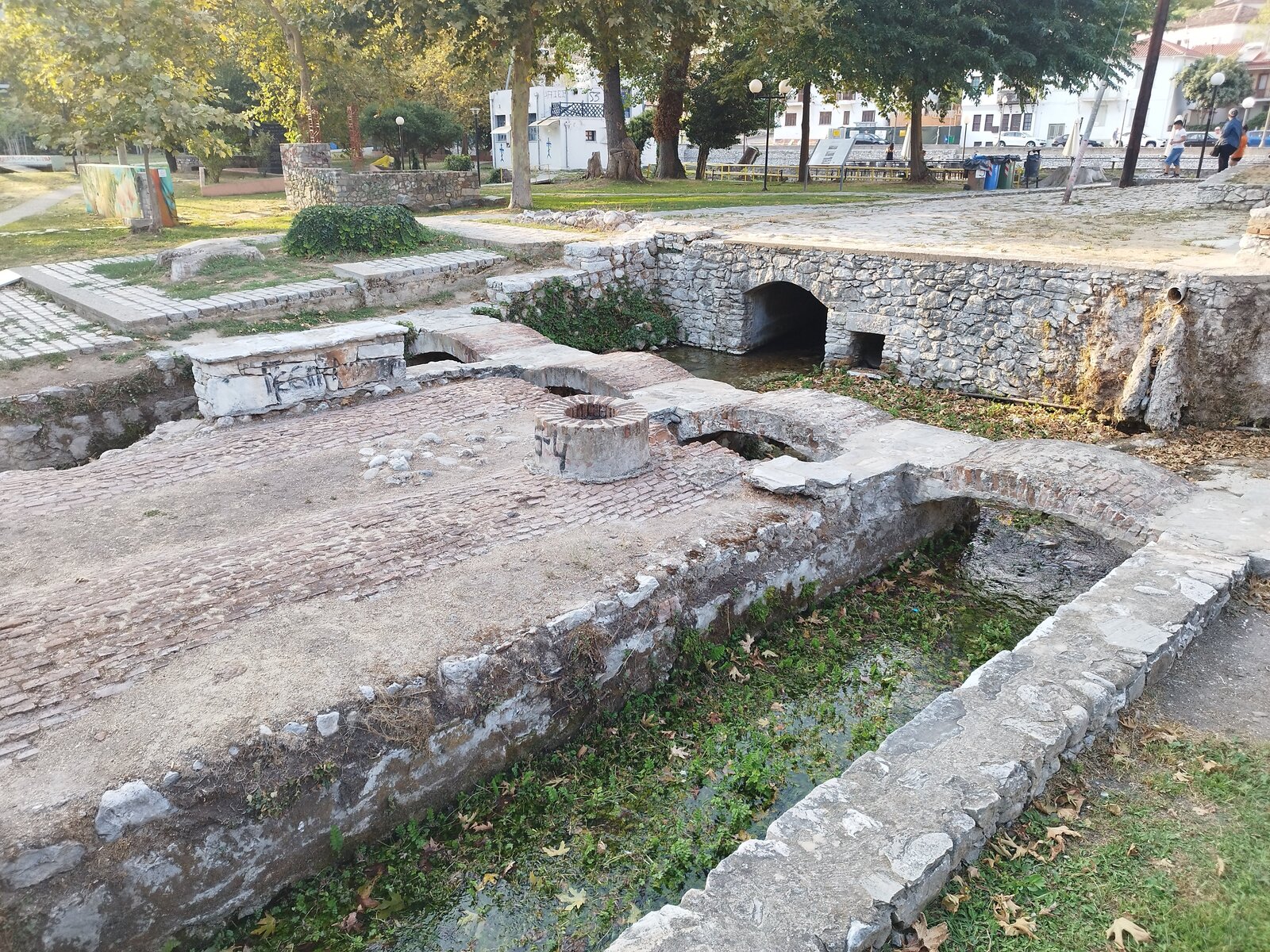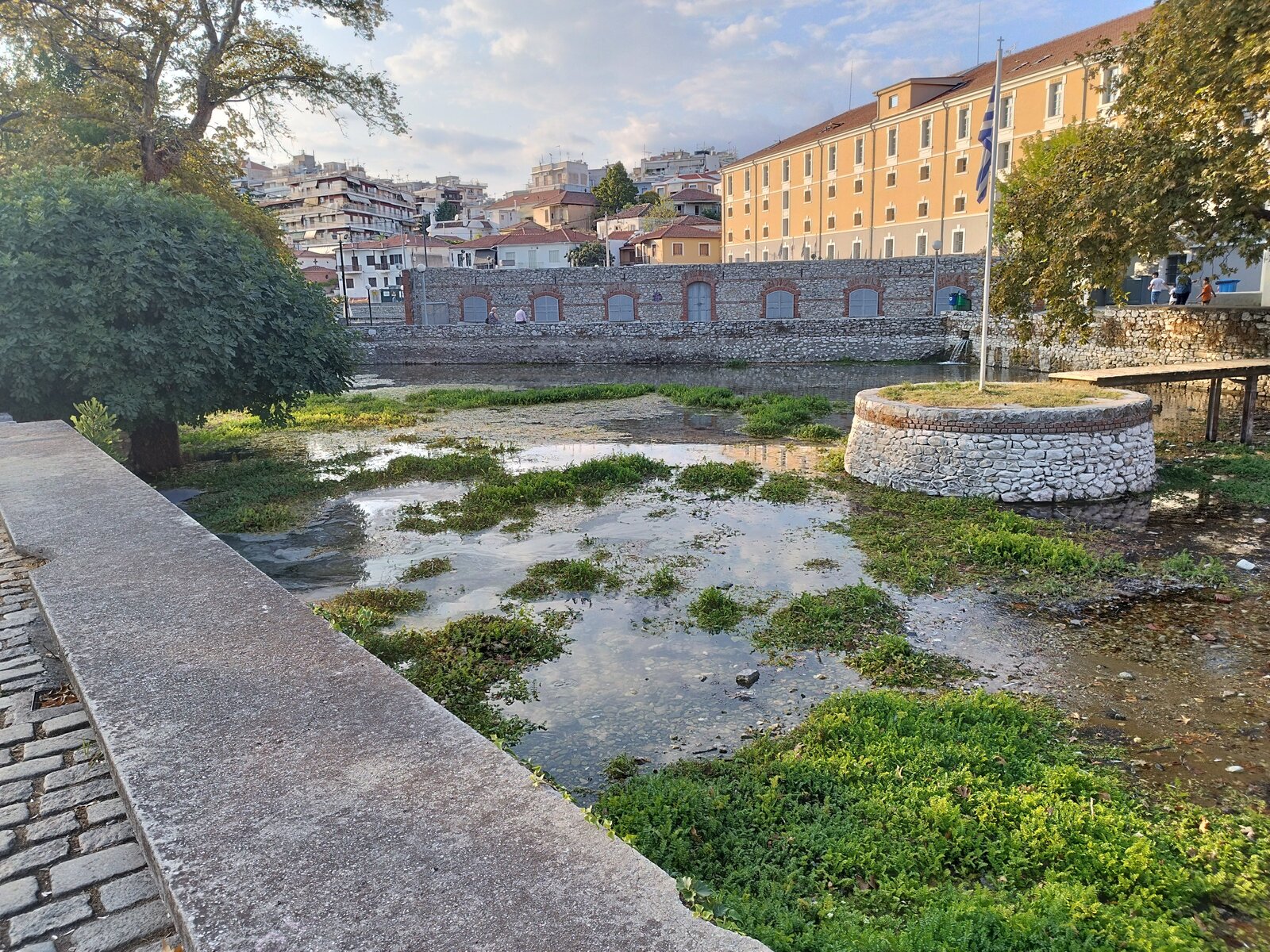 Разходката ми тръгна през парка "Св. Варвара" (Κήπος Αγίας Βαρβάρας). Там ме настигна сушата, която наблюдавах още от Кулата и при Керкини - водата просто я няма. В началото попаднах на мостчета над сухи корита на малки езерца - останала беше структурата, но не и смисълът ѝ.