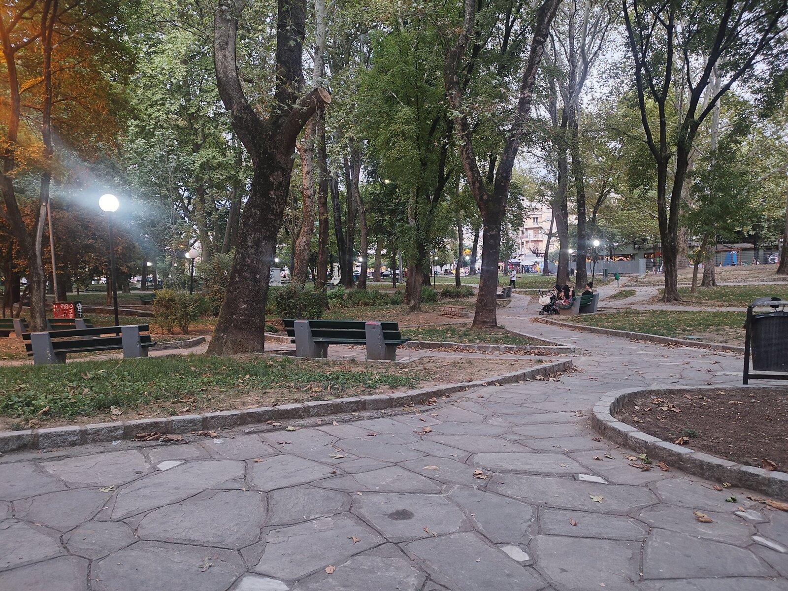 Излязох и се прибрах веднага, пак покрай парка, откъдето започнах разходката. Беше шумно - заведенията до парка бяха препълнени. Разговори и звън на чинии, като вълна, която не спира. И над това - тъмните дървета. Лампите държаха пътя видим и сигурен, и това стигаше.