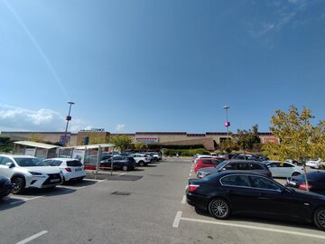 Самият мол имаше огромен паркинг, но "най-голямото" като усещане не се случи: очакванията отново бяха по-големи от реалността. Като идея и мащаб ми се стори обикновен, сравнено с това, което имаме в България. Открояваше се повече с външните неща - църквата, амфитеатъра и зоната за хранене. Отвън сградата изглеждаше ниска, а вътре ме удари високият таван.