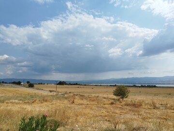 След Солун пейзажът започна да се променя: първо хълмове, после планини - и пак навлизах в планински масив. Спрях за кратка почивка на една отбивка с гледка към спокойно езерце (Бешичкото). Водата изглеждаше неподвижна, а вятърът беше силен - усещаше се някаква спокойна мощ на природата, без драматичност, просто факт.