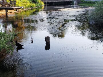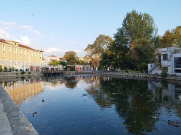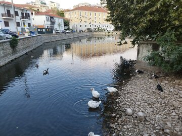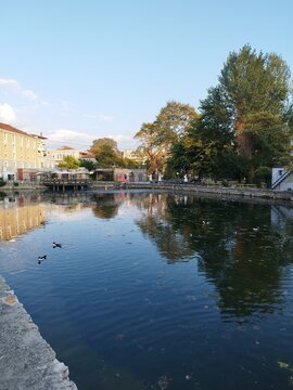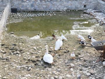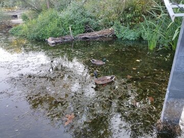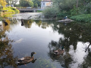 Продължих към центъра. Видях патици и лебеди - първо на сушина, после стигнах до старинна помпена станция и пълно езерце. Някак рязко "се появи" вода и всичко стана по-живо. Каменната маса до езерото ме усмихна - проста, на място, и сякаш никога не е била за снимки, а просто за хора.