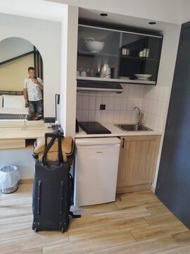 Закуската този ден има вкус на колебание. Седя на масата и разигравам в главата си два варианта - ако апартаментът е зает, тръгвам по-на юг, ако е свободен - оставам и отивам на плаж. На рецепцията разговорът се превръща в лека закачка - усмивки, малко въпроси и после онова просто "свободен е", което обръща посоката.